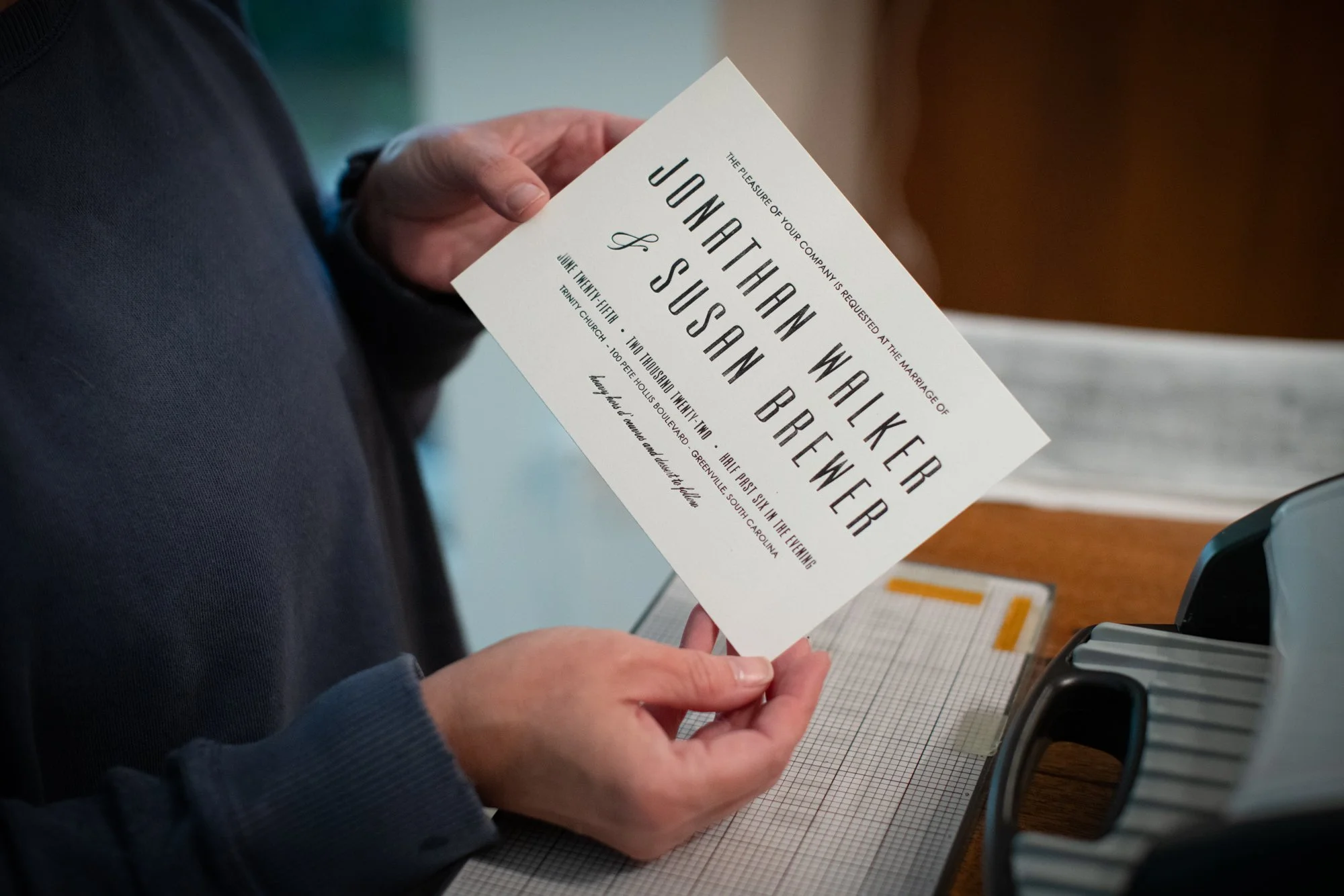 Mary Susan is wise in so many ways and one of them is in wedding planning (being a former wedding planner herself). She constantly reminds me that the process will take longer than I think. Kindly she offered to take an afternoon from her sabbatical to help me letterpress all of the invitations, but wisely she told me to practice first.